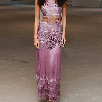 FRANJA MACRAMÊ PINGENTE 83,5cm LILÁS ENVELHECIDO 10m