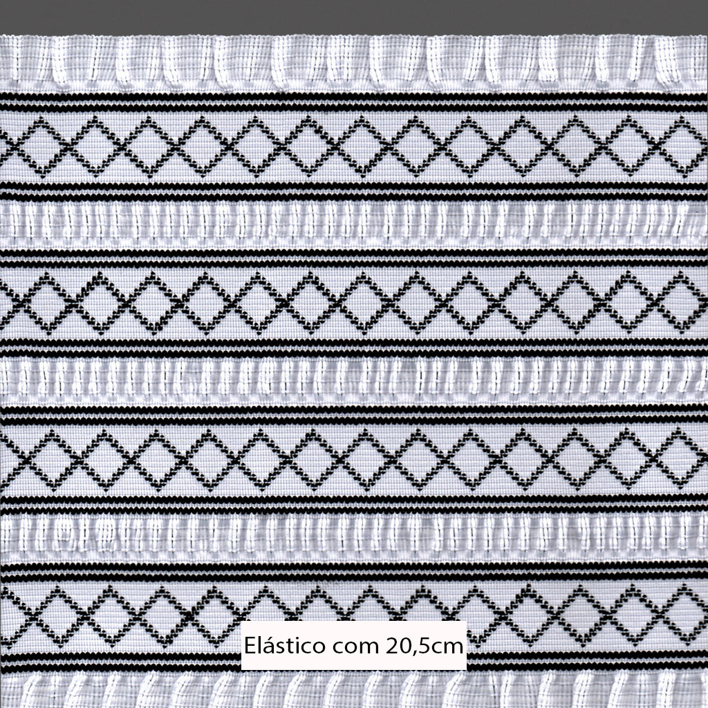 ELÁSTICO GEOMÉTRICO BABADO TOP 20,5cm BRANCO/PRETO 10m