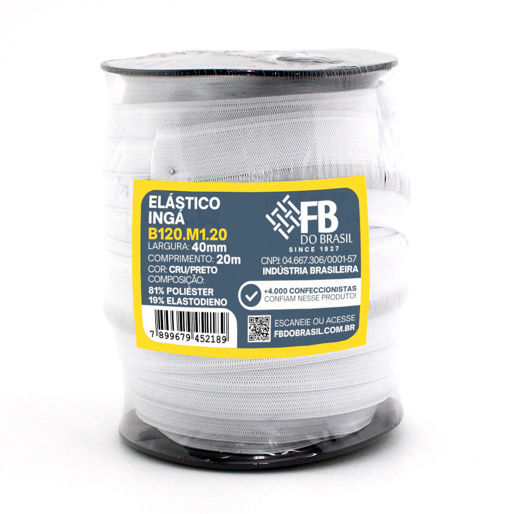 ELÁSTICO INGÁ 40mm SEM BENEFICIAMENTO/PRETO 20m