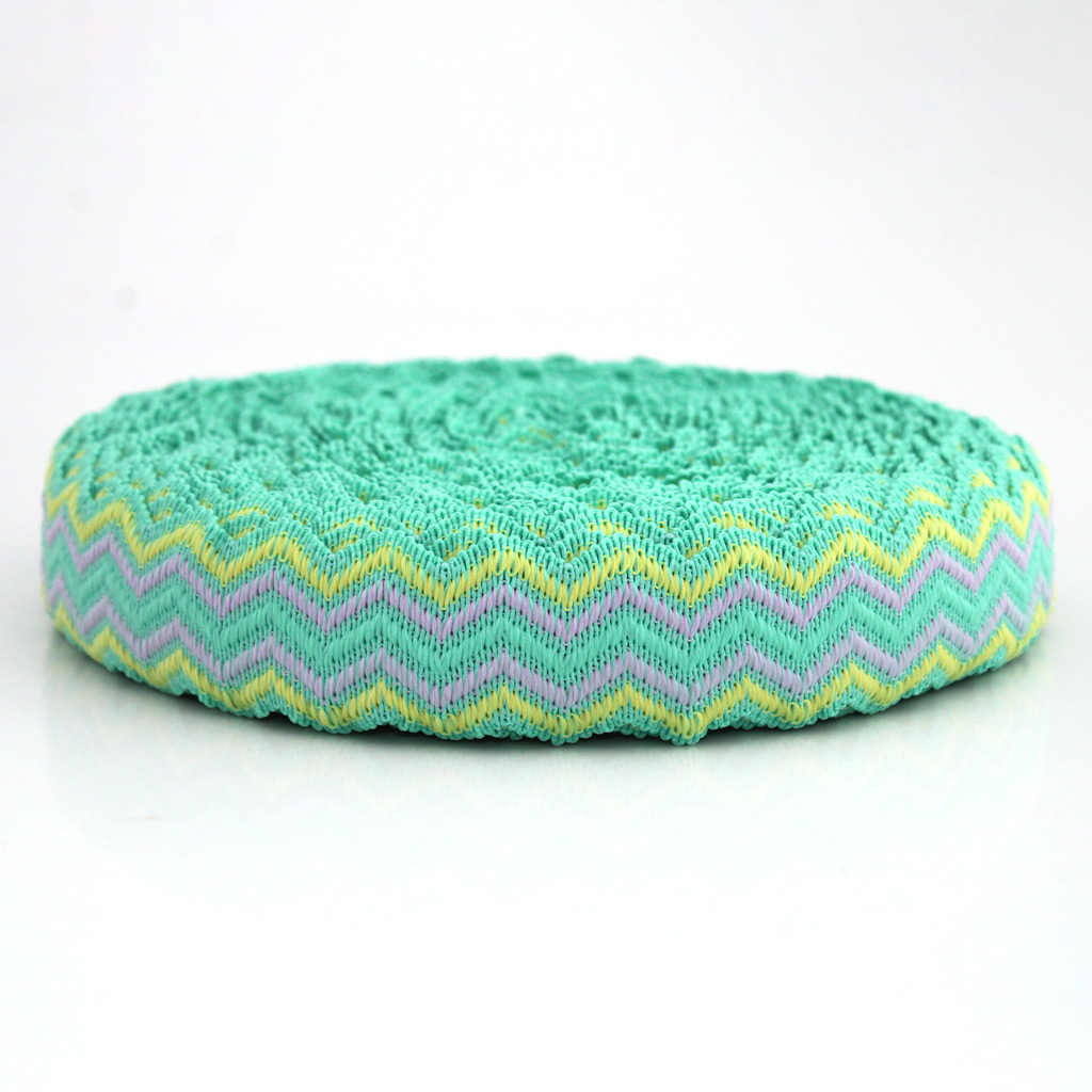 ELASTICO SIANINHA ZIG ZAG 4cm VERDE/AMARELO BEBÊ/LAVANDA 25m